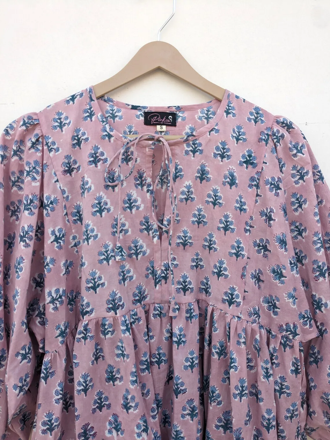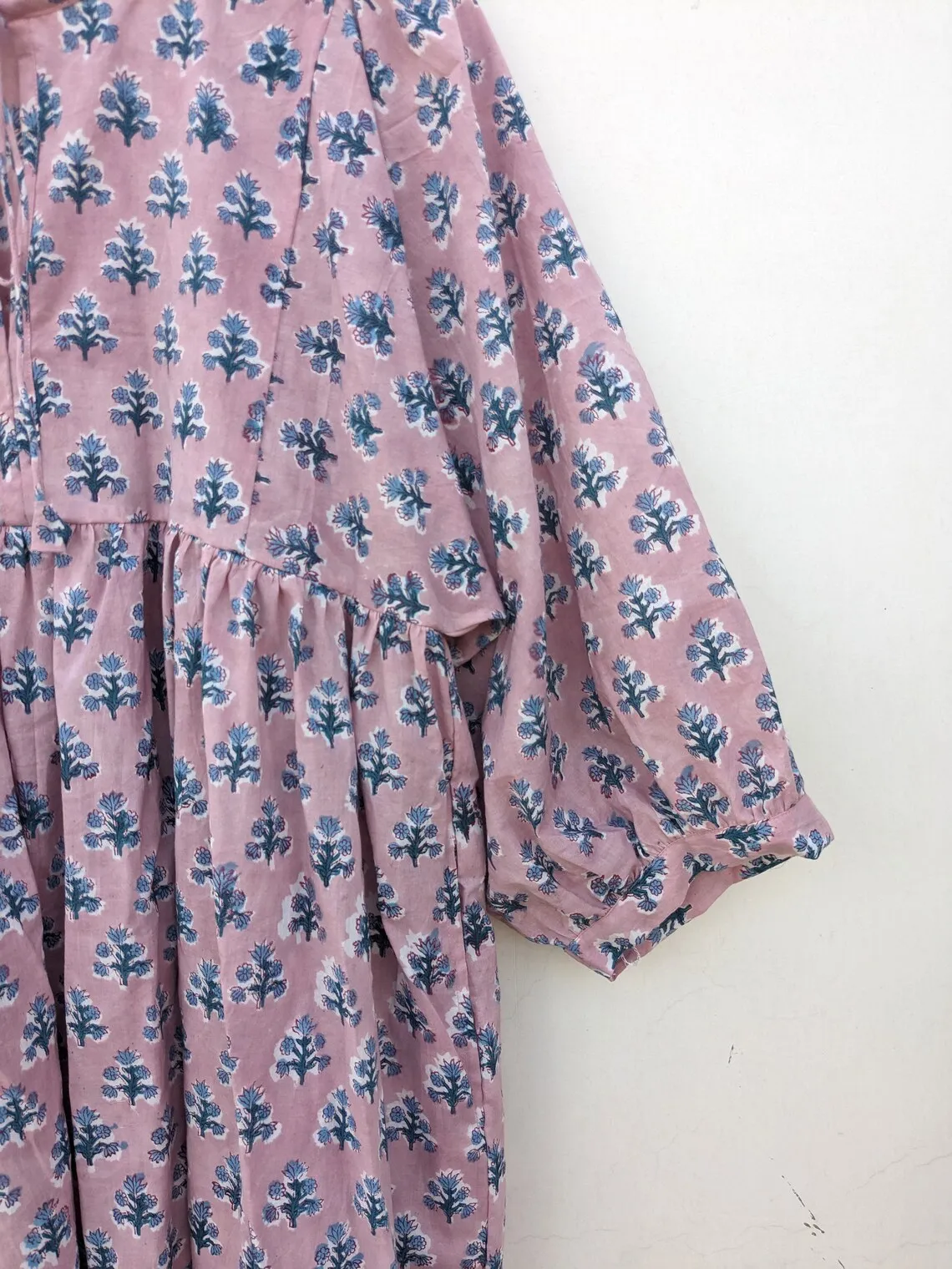 Handmade Summer Cotton Dress Hand Block Printed Floral Design with Ruffles Sustainable Autumn Season